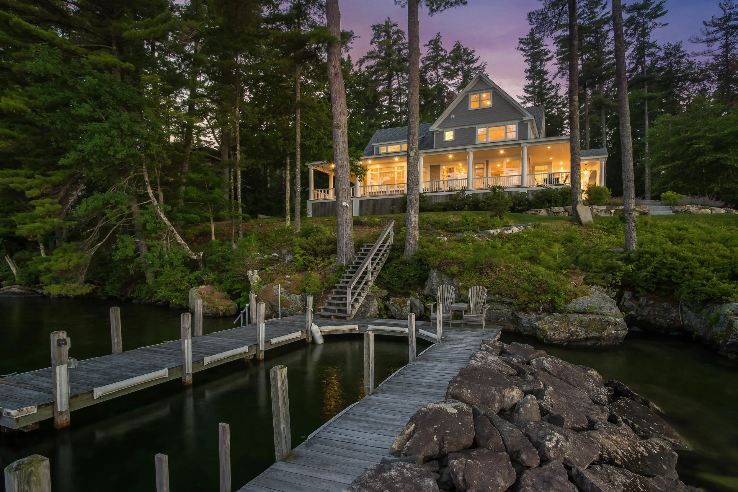 This entirely renovated and remodeled lake house has 297’ of frontage with exceptional lake views, including up “the Broads” of Winnipesaukee. The property is located in one of the most exclusive neighborhoods on Lake Winnipesaukee, next to the most expensive residential property on the lake. The property includes a three boat-slip dock, permitted two-slip boathouse, sweeping lakefront lawn, stone walkways and a lakeside bluestone patio with a natural stone fire pit.